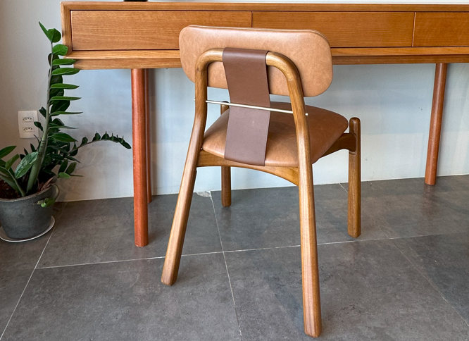 Uma cadeira clássica de espaldar médio. Seu design esta baseado na combinação perfeita entre diferentes materiais sofisticados. A madeira maciça é predominante em seguida do couro e o metal formam detalhes atraentes que elevam a cadeira para uma categoria superior.