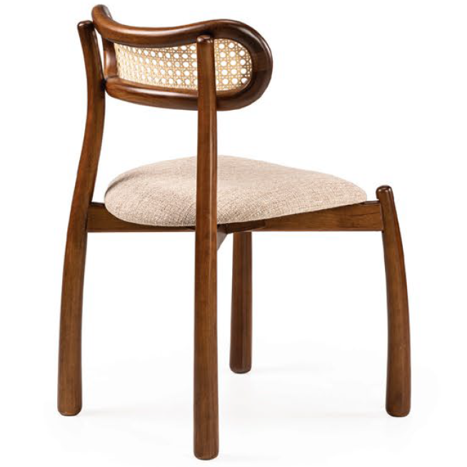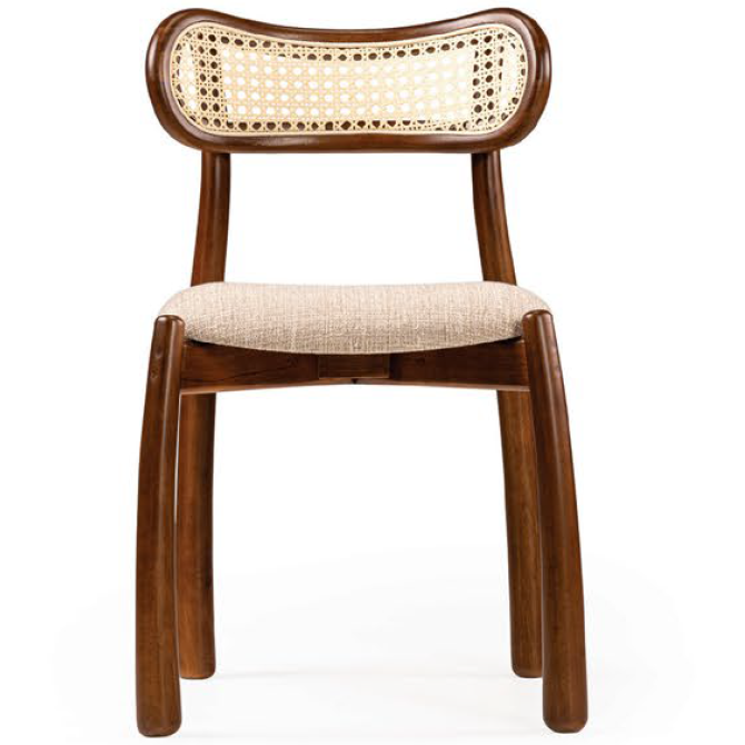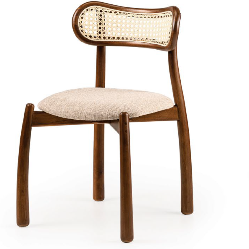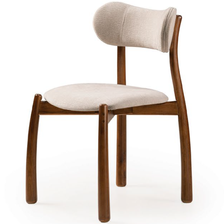 Meleca revela uma estrutura em madeira que parece ceder e escorrer suavemente pelo chão. Os pés curvos e irregulares criam essa sensação de derretimento reforçando a expressão da peça. O encosto leve, com formas contínuas, completa a peça com naturalidade.