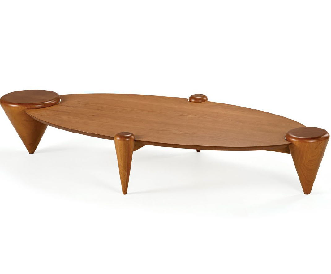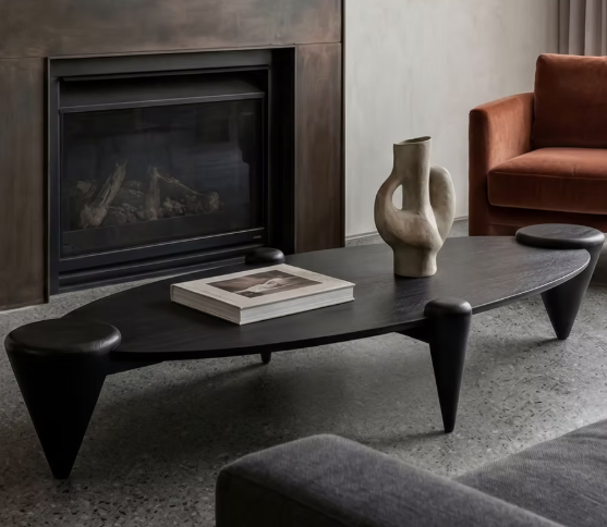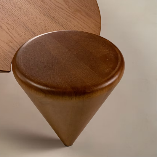 Punta nasce do contraste: pés que começam robustos e se afinam com precisão, revelando um gesto escultural que guia o olhar. O tampo repousa sobre essa base singular, criando uma presença serena e sofisticada. Uma peça que combina força, delicadeza e um desenho que permanece na memória.